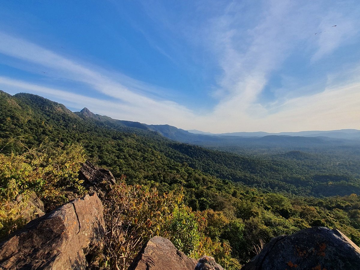 पहाड़ की चोटी से विहंगम नजारा दिखता है। यह पहाड़ ट्रेकिंग के लिए बेहतरीन जगहों में से एक है।